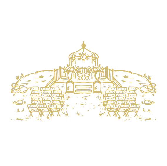 Jusqu'à 250 invités pour une cérémonie en plein air. La configuration est entièrement personnalisable : rangées de chaises, allée centrale, arche ou mise en scène sur-mesure.